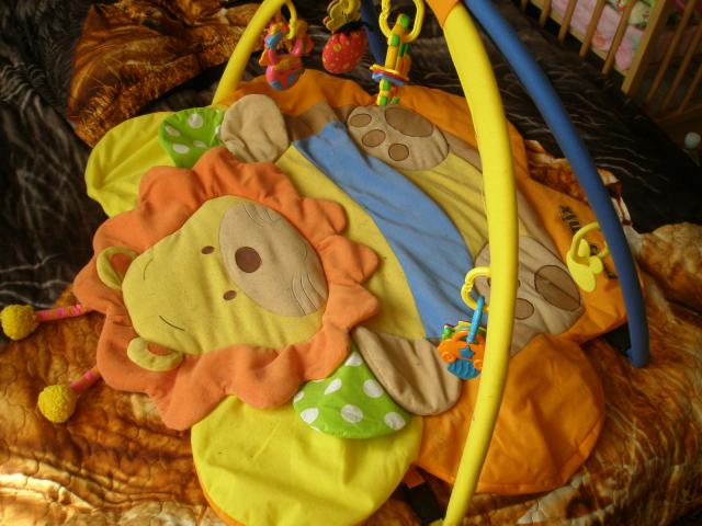 puikus,beveik naujas mazai naudotas lavinimo kilimelis,tiks tiek berniukui tiek mergaitei kaina 50lt,dovanu pridesiu visokiausiu barskuciu :) grojanti ir besisukanti karusele,ryskiu spalvu,mergaitei,kaina 50lt kedute skirta maudynems,nuo 6men,kedute labai tvirtai prisitvirtina prie vonios,todel neslysta,puiki pagalba maudant vaikuti,o ir vaikuciui patiks sedeti joje ,kaina 40lt dar turime manieza,maniezas gerokai padevetas,nes naudotas ne vieno vaiko,yra kelios nedideles skylutes ant tinkleli