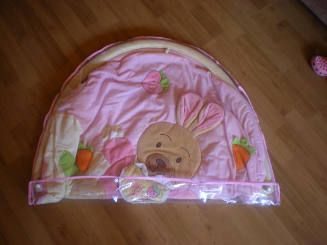 Mazai naudotas, rozines spalvos lavinimo kilimelis. Su pakuote