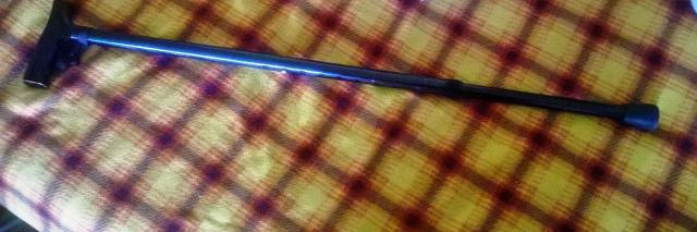 Keletą mėnesių naudota lazda. Ilgis reguliuojamas. Iš aliuminio, rankena - medinė. Sveria apie 300 gramų. Sėkminga: aš pasveikau, ir tas, kuris pirktų, pasveiks... :) Juoda, nors nuotraukoj atrodo, tarsi būtų dviejų spalvų.