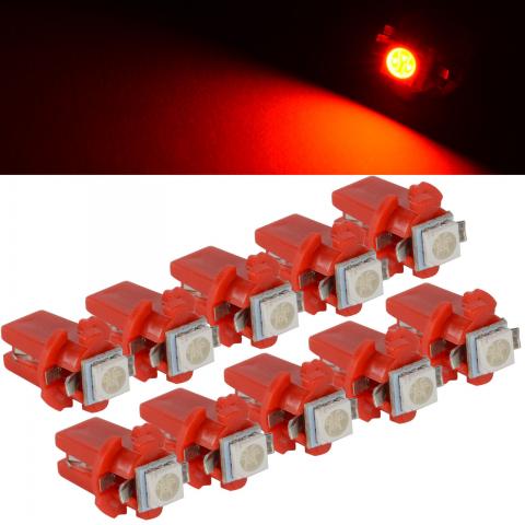 10vnt., naujos, raudonos, i spidometro skydeli, paneles ir..pan. LED type: 5050 (1SMD) Connect type: B8.3D Voltage: DC 12 V Current: 0.2 A Lumen: 20 Lm Lighting Color: Red siuntimas pastu nemokamas