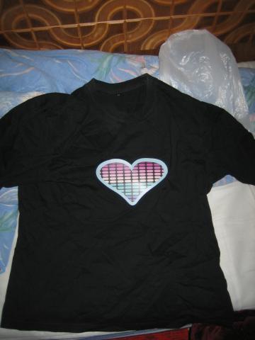 Marškinėliuose esantys ekranai yra tik 1 milimetro storio. Kadangi jie nebijo drėgmės, marškinėlius galite drąsiai skalbti rankomis. Prie ekrano jungiamas mažas valdymo blokelis, kuris dedamas į vidinėje marškinėlių pusėje esančią kišenėlę. Į jį dedamos keturios AAA tipo baterijos, kurių užteks 24 valandoms. Marškinėliai patogūs, o svarbiausia - atrodo įspūdingai! Tai puiki dovana tau ir tavo draugui. Marškinėlius patartina dėvėti tamsiu paros metu arba tamsesnėje patalpoje,tada geriausiai atrodo :)