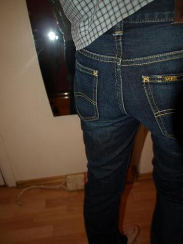 grazus tamsiai melyni Lee dzinsai, i gala platejantys, dydis 36 butu