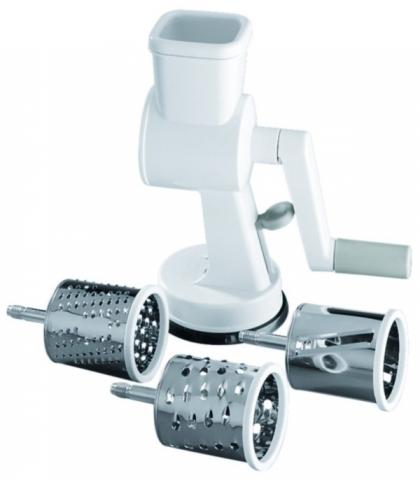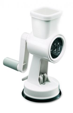 Leifheit malūnėlis (daržovėms, riešutams). Malūnėlis su trimis skirtingais malimo būgneliais: stambiam, vidutiniam ir smulkiam tarkavimui. Dėl neslystančio pagrindo saugus naudoti. Tinka tiek kairiarankiams, tiek dešiniarankiams. Prie stalo prisitvirtina labai stabiliai, bet kurioje jums patogioje vietoje. Yra dėžė.