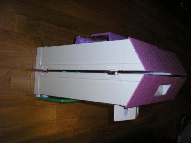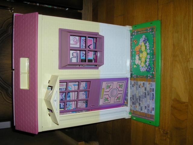 Leliu (Barbie) namas, bet tinka zaisti ne tik su Barbemis :) bukle vidutine, foto matosi, kai kurie langai suluze, balta spalva, vietomis gelsva, pasilupe lipdukai, bet dar tinkamas zaisti. Jis dalinai sudedamas, pvz stogas nusiima uzsideda.