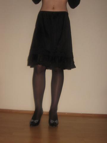 Lengvas sijonas, puikiai tinka vasarai. Ant gumos, todėl dydis gali skirtis, bet manau, geriausiai atrodytų 38 dydį nešiojančiai panelei. Priešpaskutinėje nuotraukoje matosi nėriniai ant sijono galo. Atsiprašau už prastą foto kokybę.