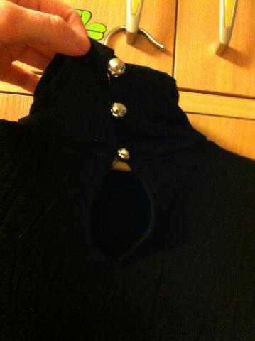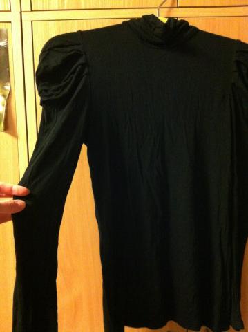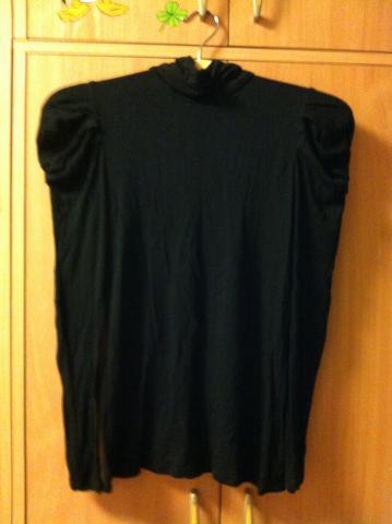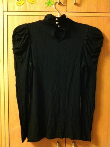 Graži, lengvai krintati palaidinė šiek tiek "papūstais" pečiais (pečiai šiek tiek primena Lady Gagos stilių). Aukštas kaklas, golfiuko stiliaus, užsagstomas nugaroje. Labai gražiai atrodo nugara.