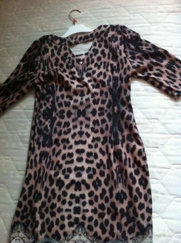 Stilinga nauja leopardinė suknelė, puošta akmenukais. Geros kokybės. M/L dydis