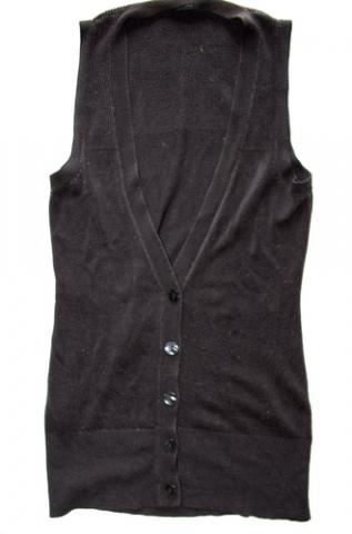 36-38 dydis:} Žavi ilga liemenė. Juoda. Ilgai dėvėta. Apsivėlyusi . Tačiau viskas vietoje : sagutės ,be skylučių ir pan :}