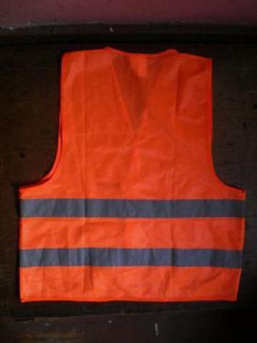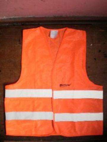 Liemenė su atšvaitais. Nuotraukose fotografuota iš priekio ir nugaros, su blykste ir be jos