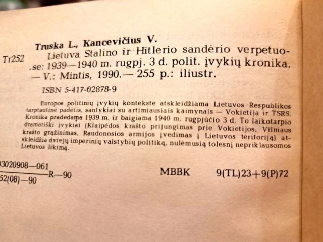 1939-1940m. rugpjūčio 3d. politinių įvykių kronika 1990m.255psl. Liudas Truska, Vytautas Kancevičius