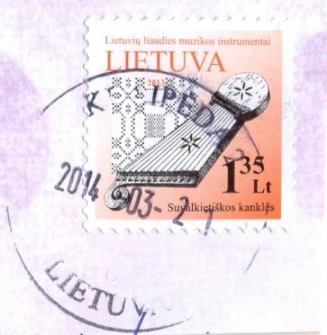 Lietuviškas 2013m. pašto ženklas "Suvalkietiškos kanklės" su spaudu. Paveikslėlyje skenuotas variantas.