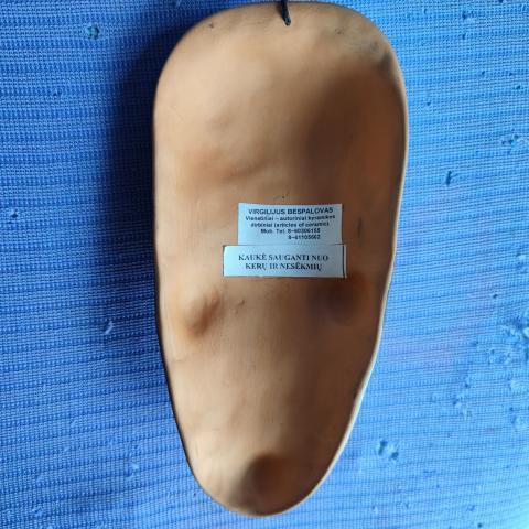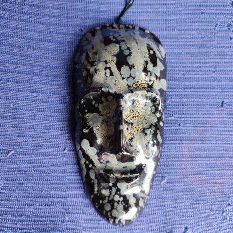 Lietuviška autorinė keramikinė pakabinama kaukė.