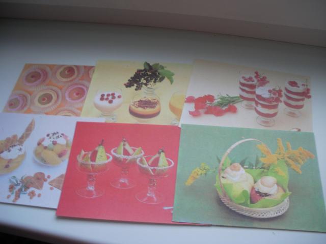 Lietuviškas desertas.Komplekte pateikiamos desertų receptūros(5-kioms porcijoms) lietuvių ir rusų kalbomis kitoje atvirukų pusėje.