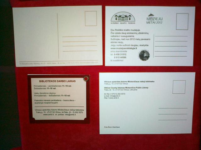Rokiškio krašto muziejus,2012 m. Vilniaus Universiteto botanikos sodas, Vilniaus apskrities A.Mickevičiaus viešoji biblioteka ir bibliotekos leidinukas keletos lapų. Vieno daiktelio kaina 0.50 eur.