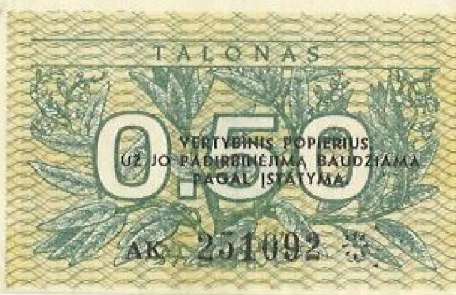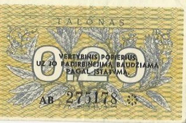 Lietuvos 1991 m. Talonai (nominalai: 0,1; 0,2; 0,5)