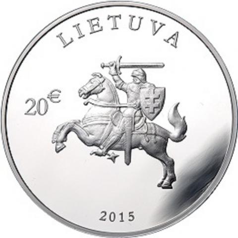 Moneta, skirta Lietuvos nepriklausomybės atkūrimo 25-mečiui (iš serijos „Lietuvos nepriklausomybės kelias") "Su maža dežute, setifikatas ir lankstinukas" Vieneto kaina - 75 EUR Perkant 3 vnt - 215 EUR Sidabras Ag 925 Kokybė proof Skersmuo 38,61 mm Masė 28,28 g Tiražas 4000 vnt. Išleista 2015 m.