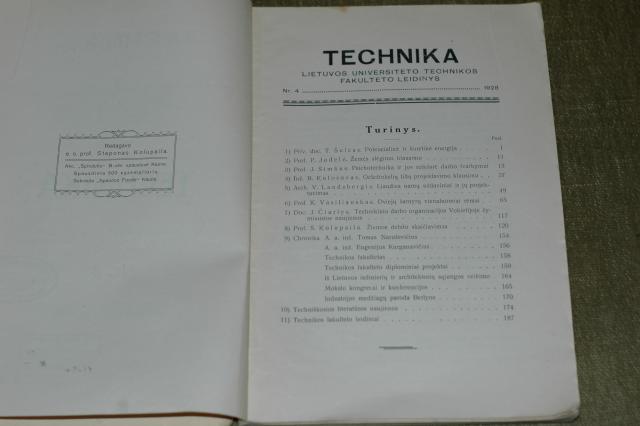 Lietuvos universiteto leidinys "technika nr 4 1928m.
