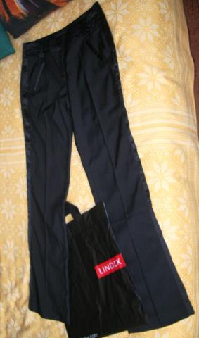mažai suprantu medžiagose.... elastano 3 procentai.Pirktos Švedijoje firminėje LINDEX parduotuvėje ir nė karto nedėvėtos,nes priaugau kelis kg ir jos man baisiai atrodo ;-(.Rašo 40 išmera,bet panašiau i 38 dydi .Mano stambios šlaunys ir man ties ta vieta tempia ir šeip mažokos ;-(,Visiškai naujos tik kad nukirpus etikete,nes net nemaniau,kad gali tekti parduoti