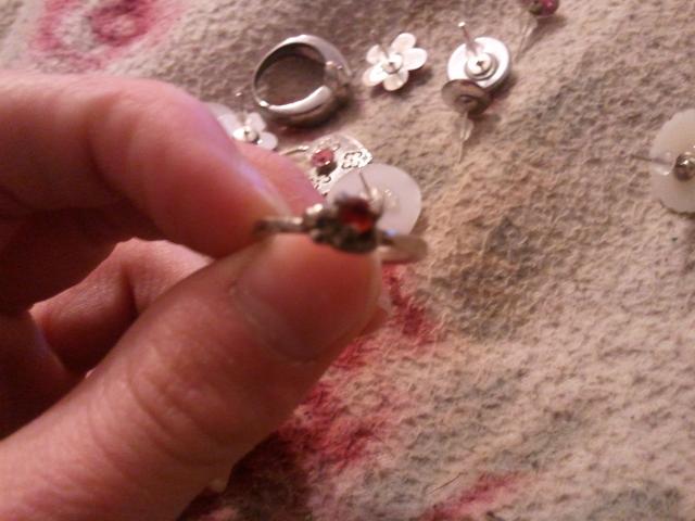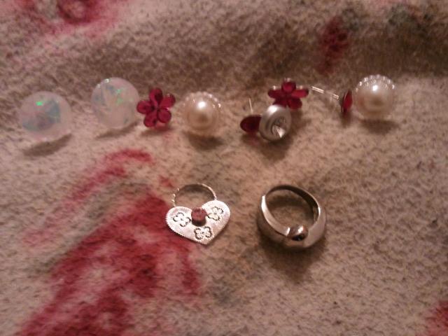 rinkinukas susideda is: 2 ziedu, 1 pakabuko, 5-ios poros paprastu auskaru. 1ziedas mazas