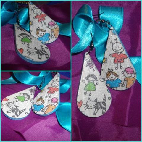 auskarai atlikti dekupažo technika, formų yra įvairių,galima ką nors ir pakeisti jei nepatinka
