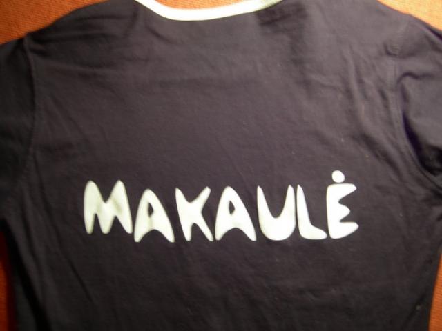 S dydis, ant nugaros yra užrašas "makaulė"