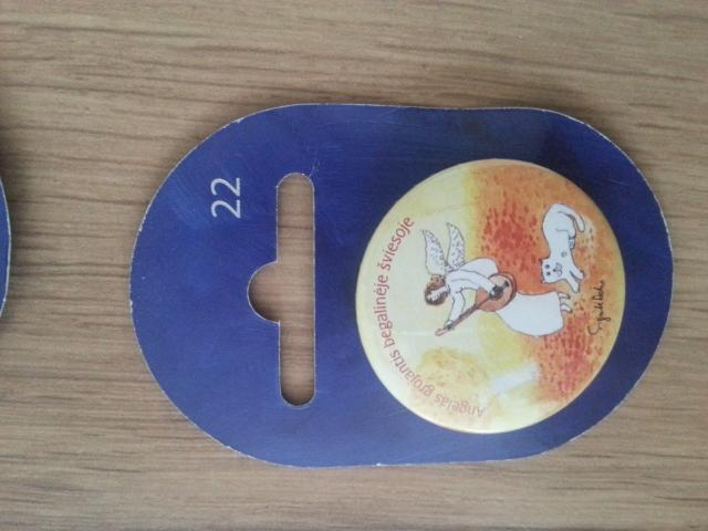 "Nieko rimto" lipdukai su gyvūnėliais (nauja pakuotė), 2 ženkliukai pakuotėse: "Tylus plaukimas maža valtele" ir "Angelas grojantis begalinėje šviesoje".