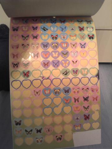 Lapas lipdukų su drugeliais. Keli nuimti.