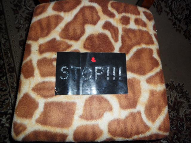 grazus blizgantis lipdukas su STOP zanklu ant maikutes