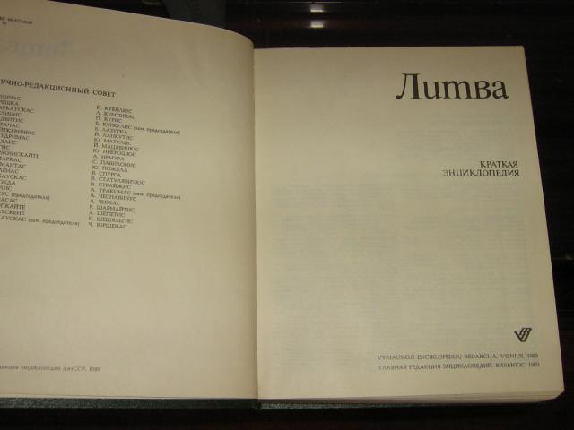 Litva kratkaja enciklopedija,rusu kalba, 672 psl., 1989m. Vilnius. Yra dar viena, bet be kieto virselio :)