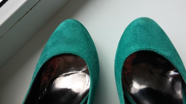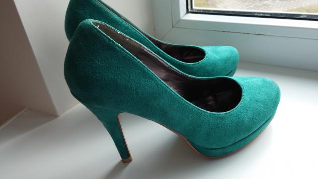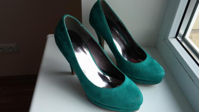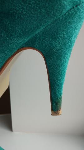 Žalios/elekrinės spalvos bateliai. Defektas - vieno batelio kulniukas truputį nusinešiojo (žr. nuotr.)