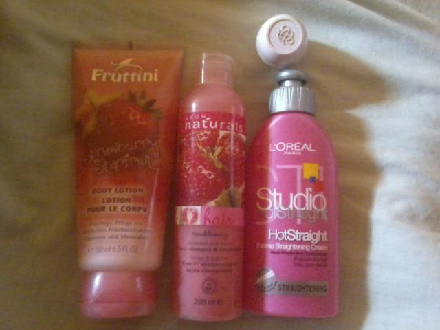 1. "Frutini" kūno losijonas su braškėmis ir grietinėle. 2. AVON plaukų šampūnas su braškėmis 3. LOREAL "Studio Hair" tiesinamasis kremas 4. ORIFLAME vazelinas. Gydo suskirdusias lūpas ir kitas išsausėjusias kūno vietas.