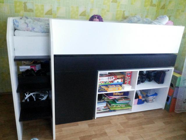 Labai geros bukles,pirkta pries metus ir tai joje mazai miegota,labai talpi yra susidet knygom zaislam,po lova labai dauk vietos mazylio zaislam sudet,issitraukia stalas prie kurio drasiai telpa sedet trys vaikai,stalas susistumia po lova taip sutaupydamas nemazai vietos.Sustumus stala po lova telpa drasiai trys vaikai,lova atlaiko nemaza svori,kas susidomejo rasykit aciusiu ismatavimus,deja lova be ciuzinio.Gamintojas Vokietija.