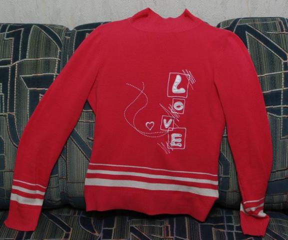 Malonus, rįožinis megztinis su žodžiu LOVE. S dydis. Buvo dėvėtas. Bet geros būklės.
