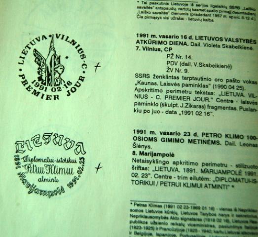 Kataloge prie kai kurių pašto ženklų, vokų, antspaudų paveiksliukų yra kryžiukai. Tai matosi katalogo nuotraukose. Siuntimas į kitus miestus + 5 litai prie kainos.