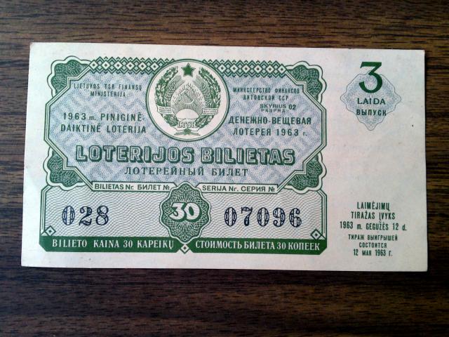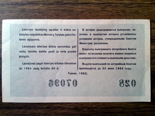 1963 m. Lietuvos TSR pinigines loterijos bilietas.