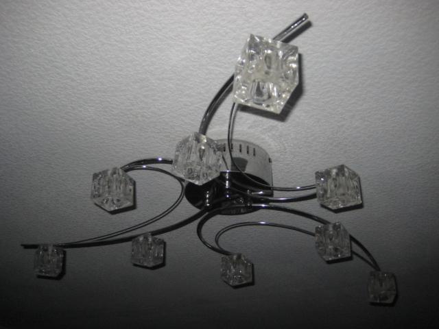 Parduodamas modernus devynių halogeninių lempučių pakabinamas šviestuvas. Geros būklės.