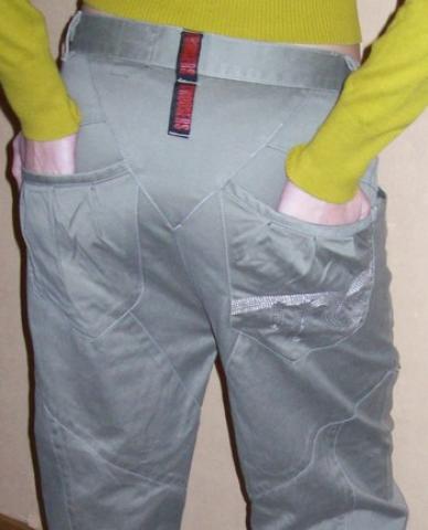 M dydžio aladino modelio kelnės. Fotografuota ant S dydį nešiojančios, tai gal kiek laisvokos. Kelnės susitraukia apačioje. Būklė labai gera, nugaroje dailios didelės kišenės. Storokos, tinka žiemai.