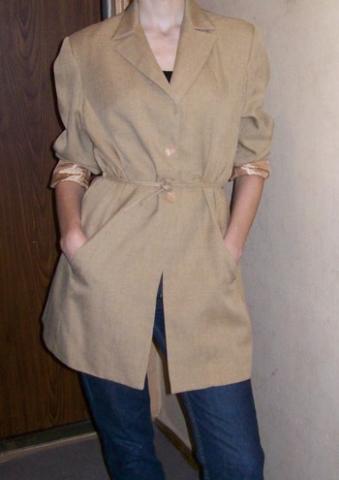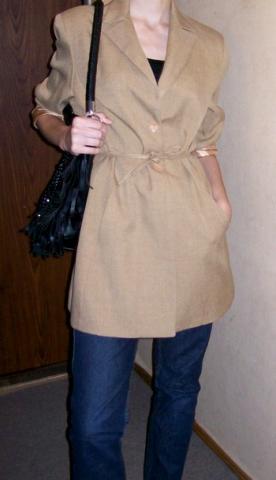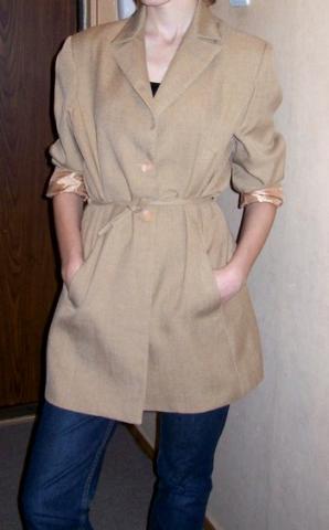 M dydžio rusvas švarkas su dirželiu. Su dviem kišenėm. Rankovės yra ilgos, bet nuotraukoje atraitytos. Man šiek tiek didokas. Būklė labai gera, be defektų.