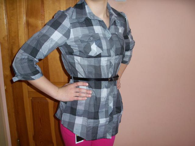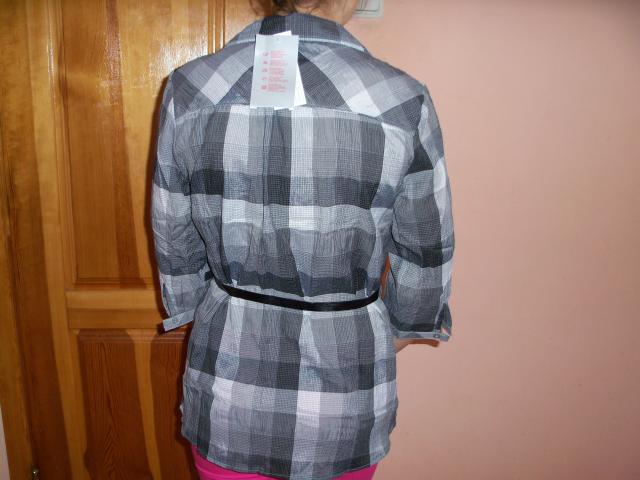 Nauji, stilingi, šių metų topas. Su dirželiu, Rankoves galima nešioti kaip 3/4 arba susitrumpinti susegant sagute. Medžiagytė čiut glamžyta.Dydis 38 ir 40. Dydžiai padidinti. 38 ilgis - 70cm. Apimtis per krūtinę iki 104cm. Liemens apimtis iki 100cm 40 ilgis - 73 cm. Apimtis per krūtinę iki 110cm. Liemens apimtis iki 108cm