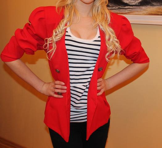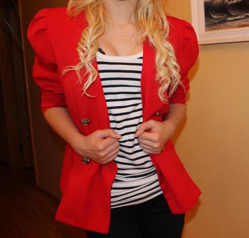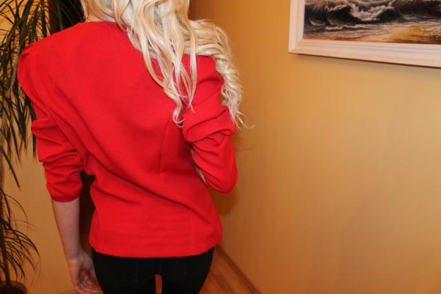 Madingas Ryškus raudonas švarkelis pustais pečiais