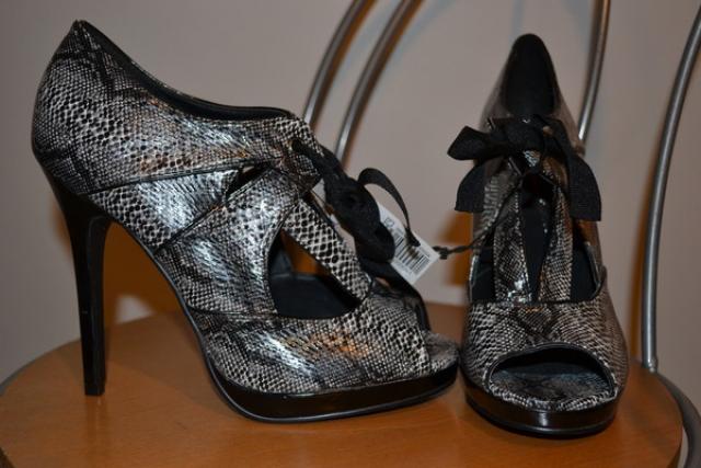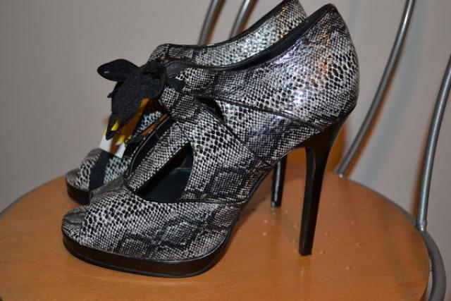 Parduodu naujus, tik pamatuotus batelius. tiesiog nuostabūs, patogūs madingi roplio odos imitacijos bateliai-basutės, iš užsienio, mokėta nemažai, atiduodu labai pigiai. kulnas 12,5cm, platformyte 2cm. be defektų :) 180lt