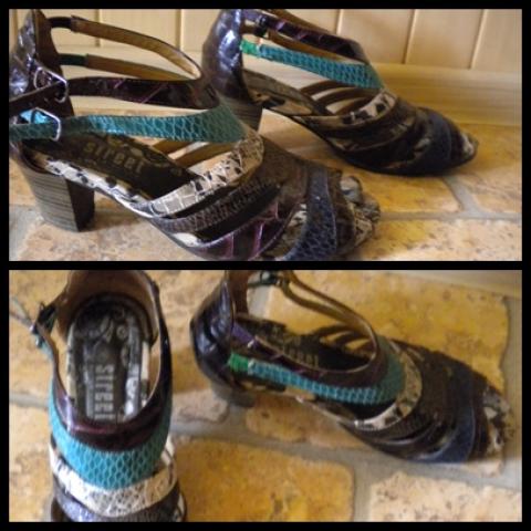 Dydis 39-40; jos nenunešiotos, mokėjau 90lt, bet dabar vienas apatinis žalias dirželis užsifiksuoja,bet neužsisega į skyputę(įtepus nekrenta,tai nesudaro patogumo)
