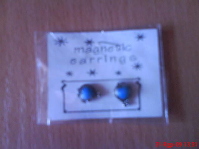 magnetiniai auskarai ryskaus akvamarino spalvos uznesantis i melyna. sirdeles formos