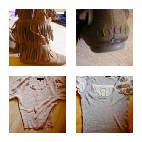 Megztukas be defektu. Susisega su daug sagučių. S-xs Džinsai pirkti bershkoi. 36dydis siaurėjantys Bliusute labai graži. Be defektu. S Batai su defektu. (nufotkintas) pirktas effigy 38 bet puikiai ir 37 .:)