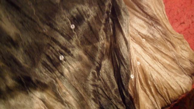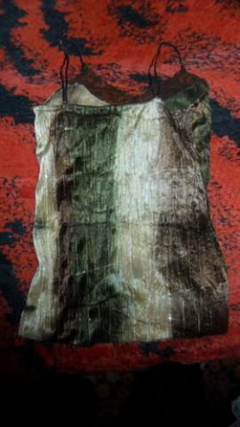 Užsidėta kelis kartus pasimatuoti, bet vis neturiu prie ko prisiderinti. Malonios medžiagos, prisiūti permatomi blizgučiai, pastelinių spalvų (labiau rudos spalvos), su petnešėlėm, galima reguliuoti jas :)