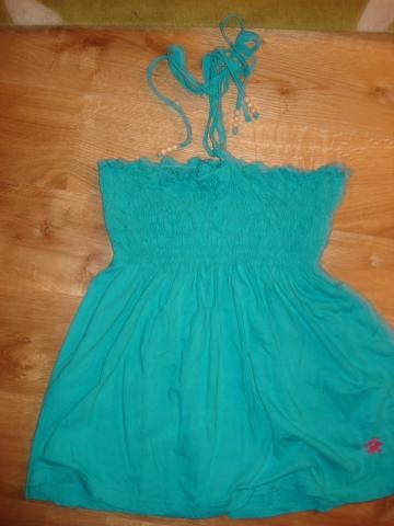 Maikutė be šleikučių, su raišteliais per kaklą. Neturi defektų. Dydis tiktų ir M ir L. Ties krutine medžiaga tamposi. Mažesnio ūgio merginoms tiktų ir prie timpų. Jei kas domina klauskite :) Kaina būtu : 15lt.