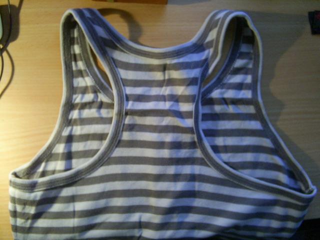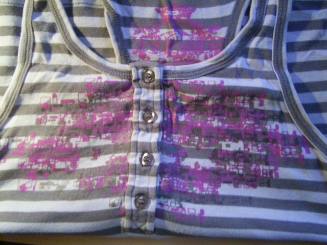 Nešiota, bet dar ryškios spalvos. Dydis, sakyčiau, M. :) Atvirais pečiais.