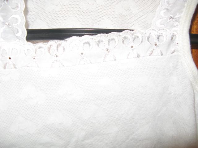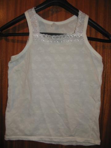 dėvėta, bet geros būklės. viršuje prisiūtas pagražinimas, visa medžiaga yra padaryta raštu, trečioje foto matosi, lyg dvi širdelės susiglaudę, bet jos keistos kažkokios, nes aukštyn kojom :D