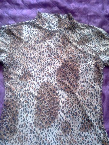 Maikute be defektu . Labai mazai nesiuota. Ji atrodo kaip golfas, tik su tumpom rankovem. Ant foto spalva ne tokia ryski, siap ji yra i ruduma. Ji tempiasi, jeigu reikia ISMATAVIMAI; krutine - 43 cm( isitempia iki 52 cm) nuo pazasties ilgis - 34 cm visas ilgis nuo kaklo - 51 cm.