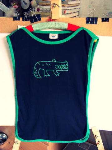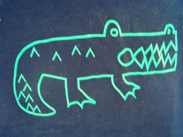 36/38 dydis. Ant nuotrauku gal nelabai matosi, krokodilas zalias, pati maike visa juoda.